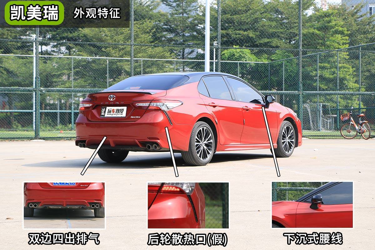 凯美瑞运动版采用双边四出排气,双边排气之间还有个小小的扩散器,后尾灯下以仿散热口的塑料件装饰。在这些小套件的装饰下,凯美瑞运动版的气质跟豪华版完全不同。