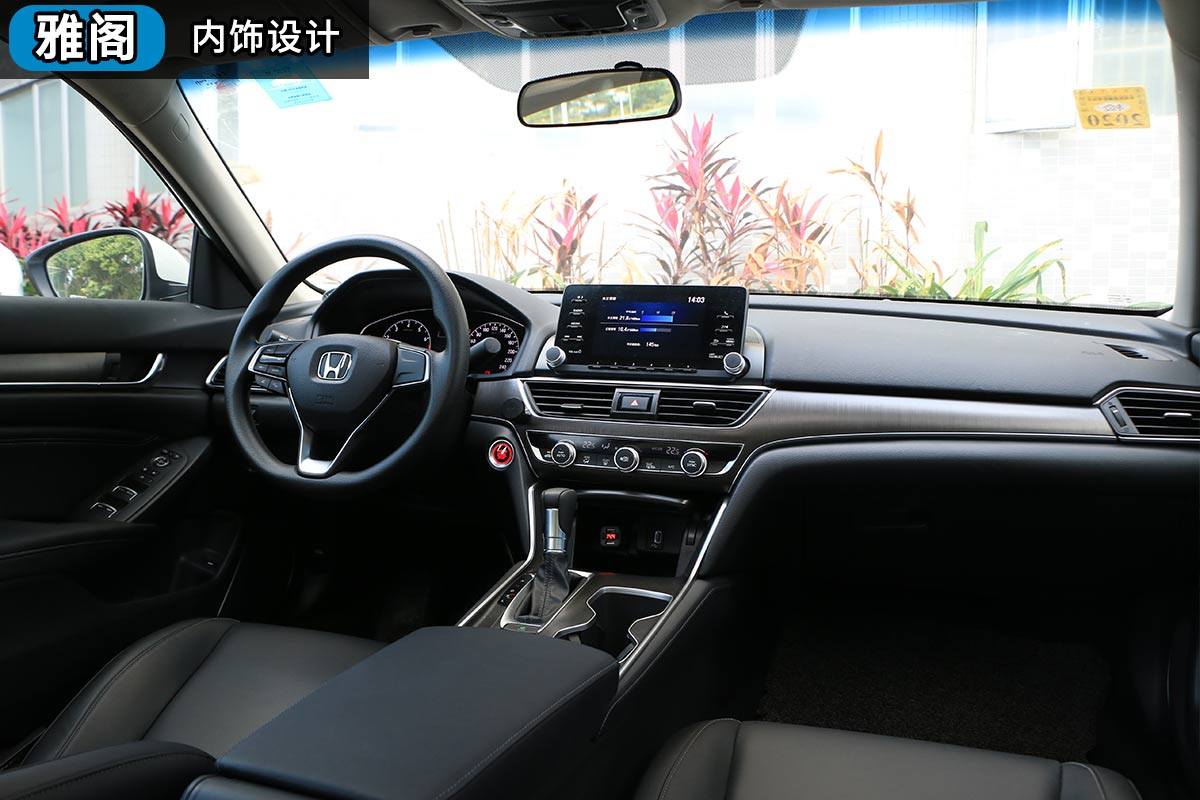 雅阁的内饰简单大气,而且用料和搭配比思域好不少。虽然这款是次低配的车型,但中控台依然采用了镀铬加木质材料的装饰,非常厚道。