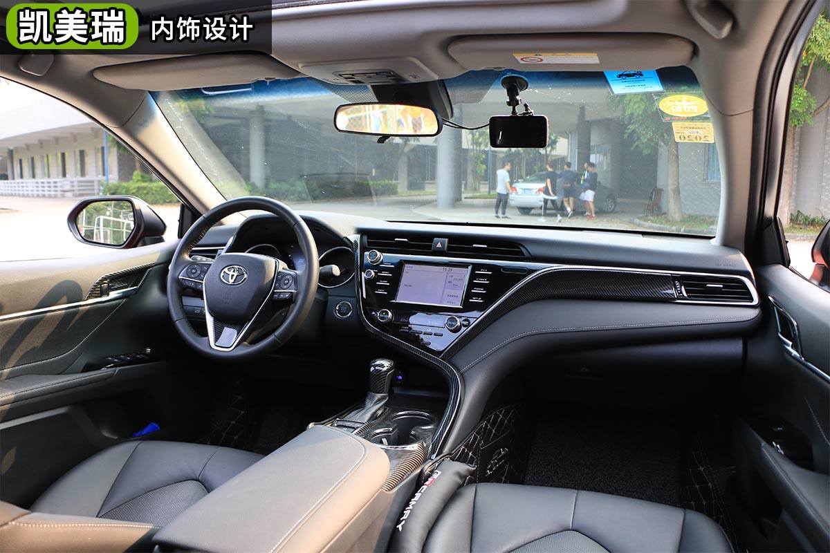 凯美瑞的这套内饰设计非常有创造力,这种曲线型的线条让凯美瑞的内饰看上去比较年轻。车内的碳纤维饰板是车主后期加装的。中控周边的塑料件很容易沾灰。