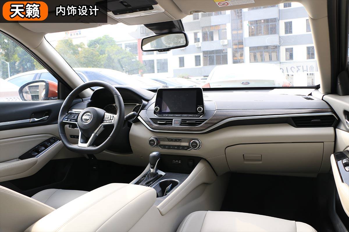 天籁这套内饰与本田的风格很相似,大气简洁。两者的用料也相似,都是木质+镀铬。这台天籁米白+黑的配色可以增加车内的光亮程度,乘坐起来比较舒心。