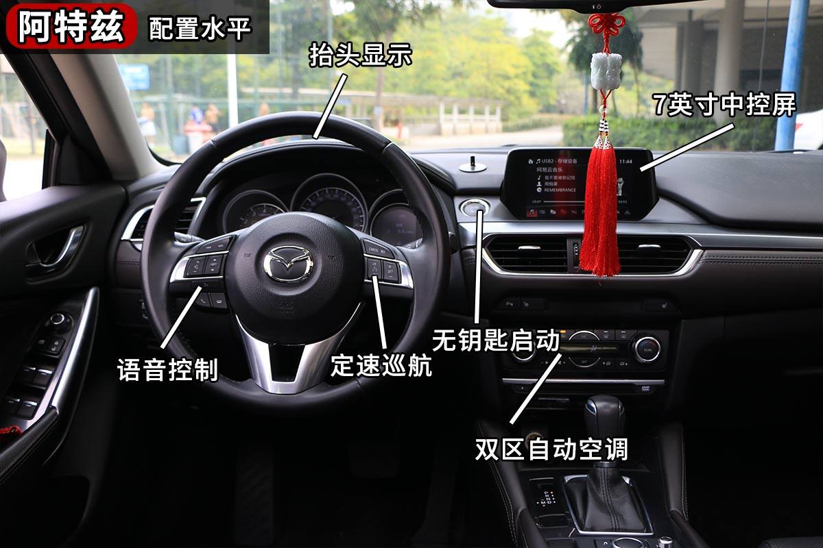 第三位出场的是马自达阿特兹。阿特兹虽然没有换代,但是马自达一贯是强调驾驶,强调操控感的车型,受到了年轻人的欢迎。这台借来的车是17款的阿特兹次顶配。目前市面上买到的18款次顶配价格要比它贵1000块,配置上多了主动降噪、倒车后侧警示、前排多层隔音玻璃等。简单地说,18款更好了。