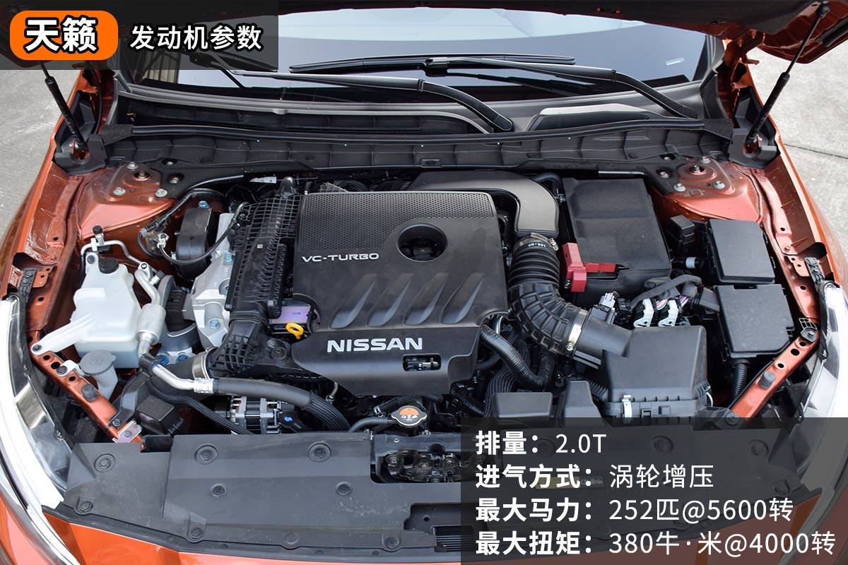 天籁这副2.0T发动机马力和扭矩都是这次横评中最大的。这副2.0T发动机带有VC-Turbo技术,压缩比可以在8:1和14:1之间切换。如果道路非常通畅,而且驾驶员油门控制得当,油耗(表显)可以低至5L/100km。