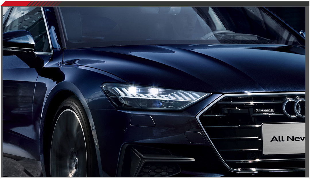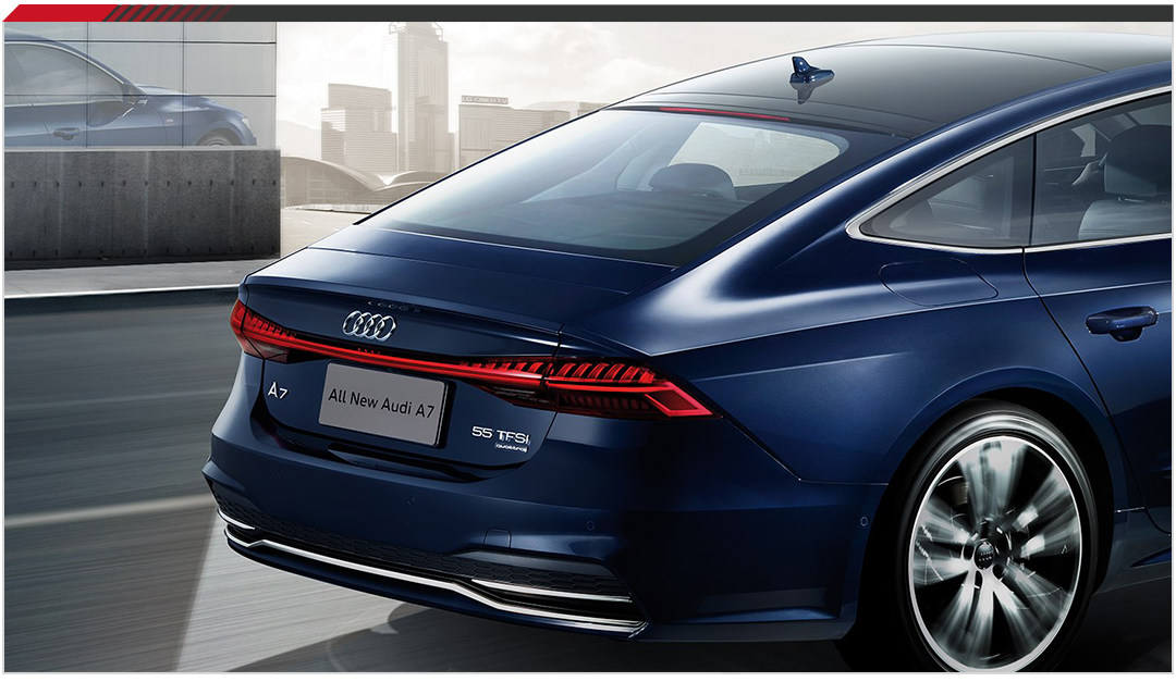 静态观摩A7,在设计风格上与全新A8车型看齐,沿袭Prologue概念车的设计理念,大尺寸的六边形进气格栅与更加犀利的车身线条整车营造出比上一代更加凶狠的造型。这次“灯厂”也升级了A7的前大灯,提供LED、高清矩阵式LED大灯和带激光远光灯的高清矩阵式LED大灯。至于尾部更是采用了贯穿式的OLED尾灯,这一风格源自于全新A8,在夜间的辨识度会更高。