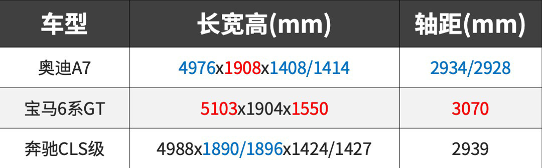 6系GT以5米多的身姿夺得第一,CLS级紧随其后,A7第三。作为一部运动轿跑,A7似乎意识到它的客户只想有更好的驾驶体验,而不是把车做大做长。车架方面使用了多种混合材料,其中四门两盖(四个车门、发动机舱盖和后备箱盖)为铝材质,整体抗扭刚度比之前提升10%。说人话就是,更好操控了。
