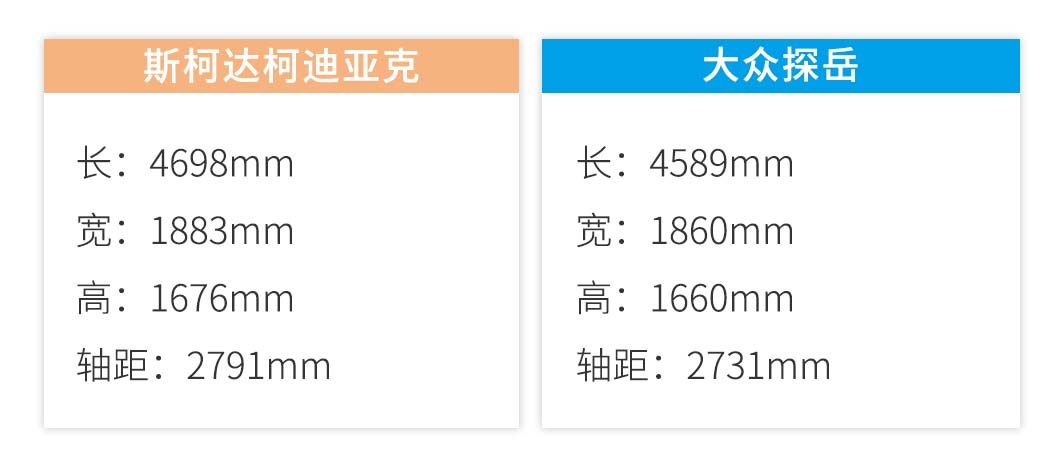 就两者的车身尺寸以及轴距来看,两者更像是放大版的紧凑型SUV,车身尺寸两者基本不相伯仲,就是在轴距尺寸上柯迪亚克要比探岳多出60mm。