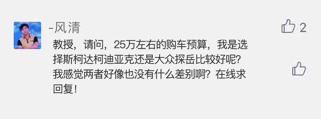 同价位选车,永远都是汽车消费中无法回避的问题,如果再把范围缩小至大众与斯柯达两个品牌之间的同价位竞争对比,那对于喜欢且倾向于选择德系车型的消费者来说更是个艰难的抉择。这不,最近教授就在粉丝留言区,看到这么句评论: