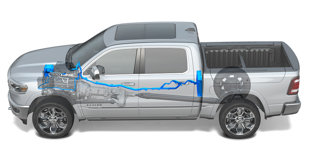 eTorque其实就是48V电气系统,FCA将RAM 1500发动机上的起动机升级成了皮带驱动的BSG,而BSG是由48V电池单独驱动的,由于BSG的功率比一般起动机都大,所以启停时发动机的抖动很小,另外在车辆起步时BSG还可以辅助发动机驱动,而制动时BSG又可以变成发电机回收制动能量。令人没想到的是,这项由欧洲厂商主推的技术,竟让帮助美式皮卡夺得了沃德十佳。