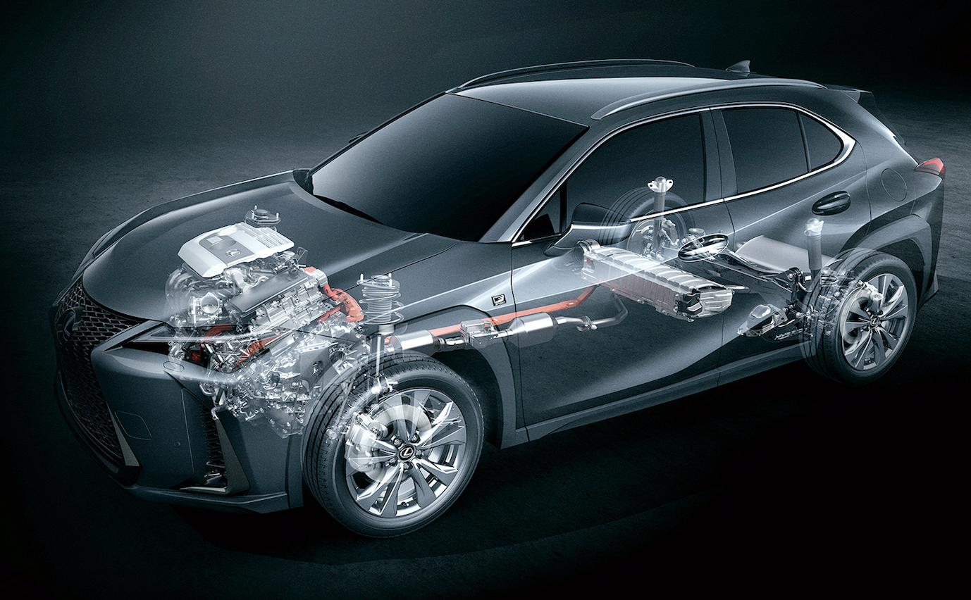 UX混动这台2.0L阿特金森循环发动机热效率达到了40%,混合动力四驱版一共有三个电机,两个电机位于ECVT变速箱内,另一个位于后桥差速器,前后桥之间并没有驱动轴,后轮完全由电机驱动,传动效率也因此得到提高。经过测试UX的百公里油耗只有6.1升,沃德评委认为UX混动是美国市场最省油的混合动力SUV。