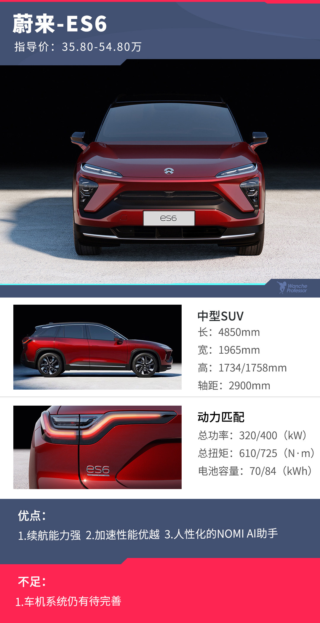打铁要趁热,既然ES8已经将市场炒热,那么趁着这波热度往市场中再投放车型进一步扩大市场份额就是自然而然之事了。这不小弟ES6便应时而生,比ES8定位往下降了一级以中型SUV自居,座位数也从7座缩减至5座,因此售价也变得更为亲民。而ES8闻名天下的“女王副驾”、NOMI系统犹在但电池容量的扩大将续航里程数增加至500公里。接下来就跟随着教授的脚步,逐步揭开ES6的神秘面纱。
