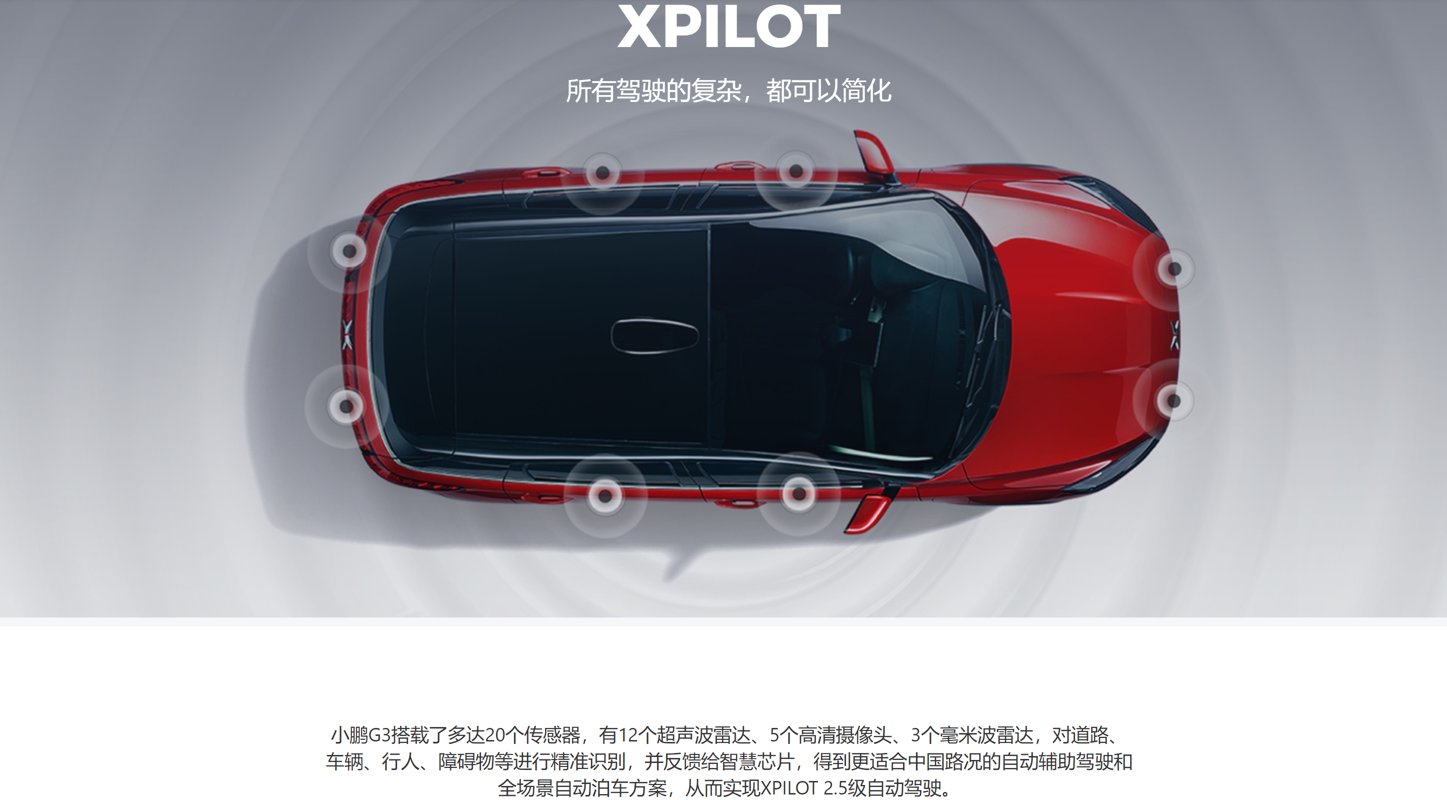 因为小鹏很清楚,从这个版本开始,小鹏G3搭载了多达20个传感器,其中包括12个超声波雷达,5个高清摄像头、3个毫米波雷达。