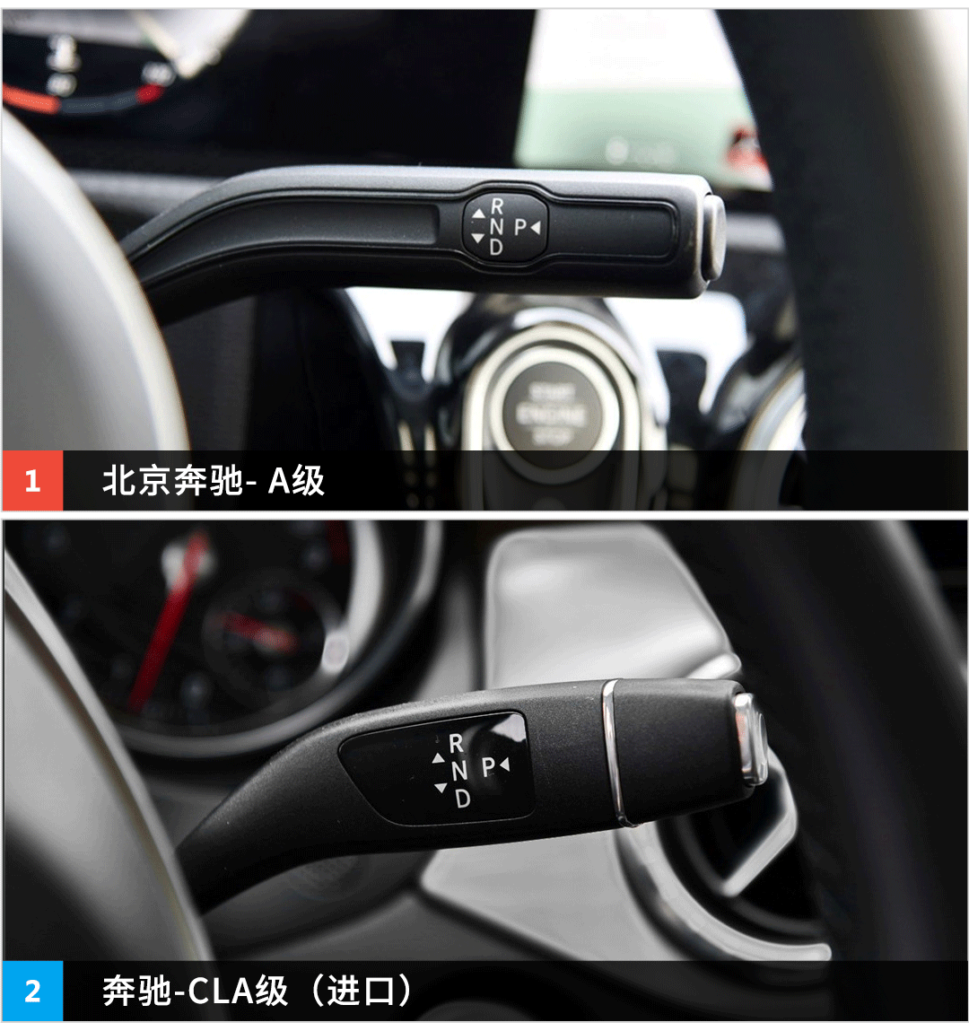 变速箱方面,二者都采用7速双离合,只是档把造型上有不同,不过教授觉得新A级的档把看起来塑料感和廉价感略强,而且有种用点力就很容易掰断的脆弱感。
