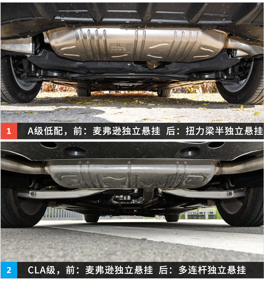 底盘悬挂:CLA级更加厚道,一视同仁值得表扬,新A级在不同配置车型上有区别对待,提出批评