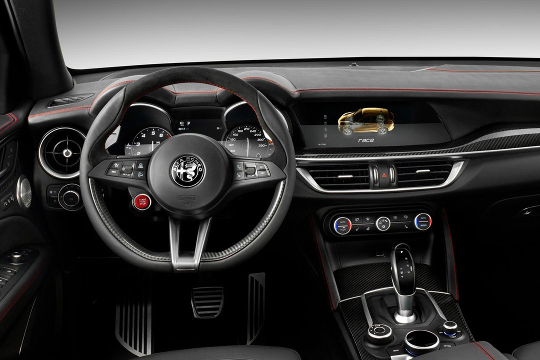 对于阿尔法·罗密欧的新生代产品,无论是Stelvio还是giulia,其驾驶表现,都是评价极高的。而且作为阿尔法·罗密欧的高性能版本四叶草,话题性也非常高。在外观上,Stelvio四叶草的前包围底部分割出了两个进气口,发动机盖上增加了两个鱼鳃一样的通风孔,四叶草的标识放在叶子板上,花瓣式轮毂为标配,尾部四出的排气。整体来看来还算低调,最少比起giulia四叶草版要更低调一点。