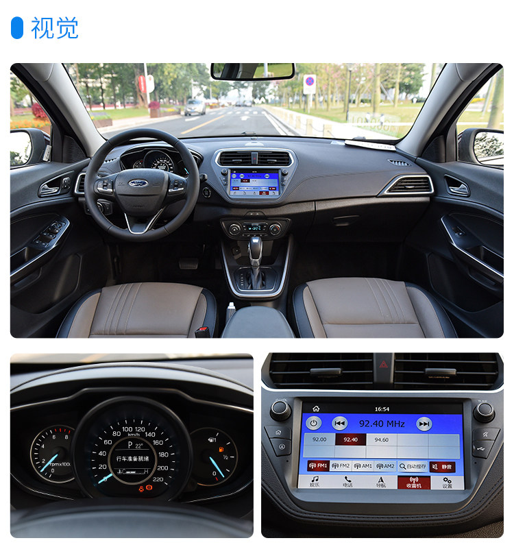 在内饰设计上,福睿斯依然使用的是福特老一派的设计风格,整个内饰看上去很厚实,造型也是横向发展的,空调与多媒体区域之间的间隔比较大,好处是在行驶中操作两个区域更加清晰,而缺点则是空调的屏幕位置太靠下,不便于阅读。