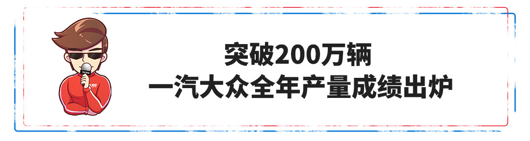 12月24日,一汽大众2018年第200万辆车型在长春基地总装下线,表示其年产量首次突破200万大关。一汽大众旗下新投产长春奥迪工厂、华东基地、华南基地二期以及华北基地,五大基地下为此产量提供了可能。显示为一汽大众能够量产更多车型的能力,以及为车型出口做出更大的可能性。