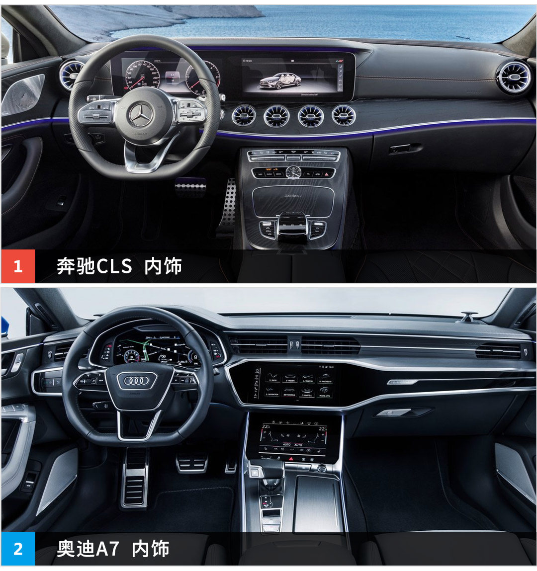 而奥迪A7的内饰同样焕然一新,虽然说和新A8,新A6是几乎一样的,但由于这套内饰面世时间相对更短,所以大家还是会更期待它的体验。和奔驰CLS相比,两车的内饰风格也是截然不同的,一个强调豪华,一个强调科技,当然,奔驰CLS的双联屏也很显科技感,奥迪A7的数字化也是一种豪华。而奔驰CLS更能营造温馨的车厢氛围,奥迪A7则相比冰冷一点,不过这样满满的科技感也是一种不错的体验,所以个人认为两车的内饰是各有千秋,不分上下的,主要看你个人喜好。