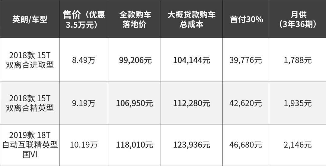 可以发现在大幅度优惠过后,英朗的1.0T(15T)中配车型用10万左右的预算就能落地,用12万预算则能搞掂1.3T(18T)的中高配车型,大家觉得这样的售价够不够吸引?
