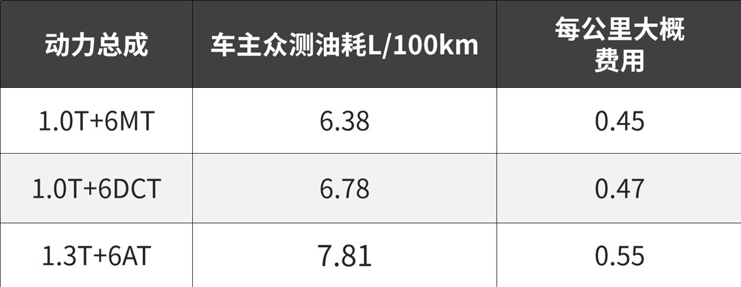 而1.3T 6AT车型的小保养价格为553元,大保养即更换机油机滤、空调滤芯、刹车油这样的价格998元,6万公里的总保养成本7665元,两套动力总成的保养费用相差不大。
