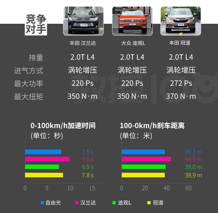 不过在尺寸方面,自由光就无法击败汉兰达、途观L和冠道等热门车型了,车身长度以及轴距数据均低于以上三款热门车型,不知道数据上的劣势会否影响它的乘坐空间体验呢?