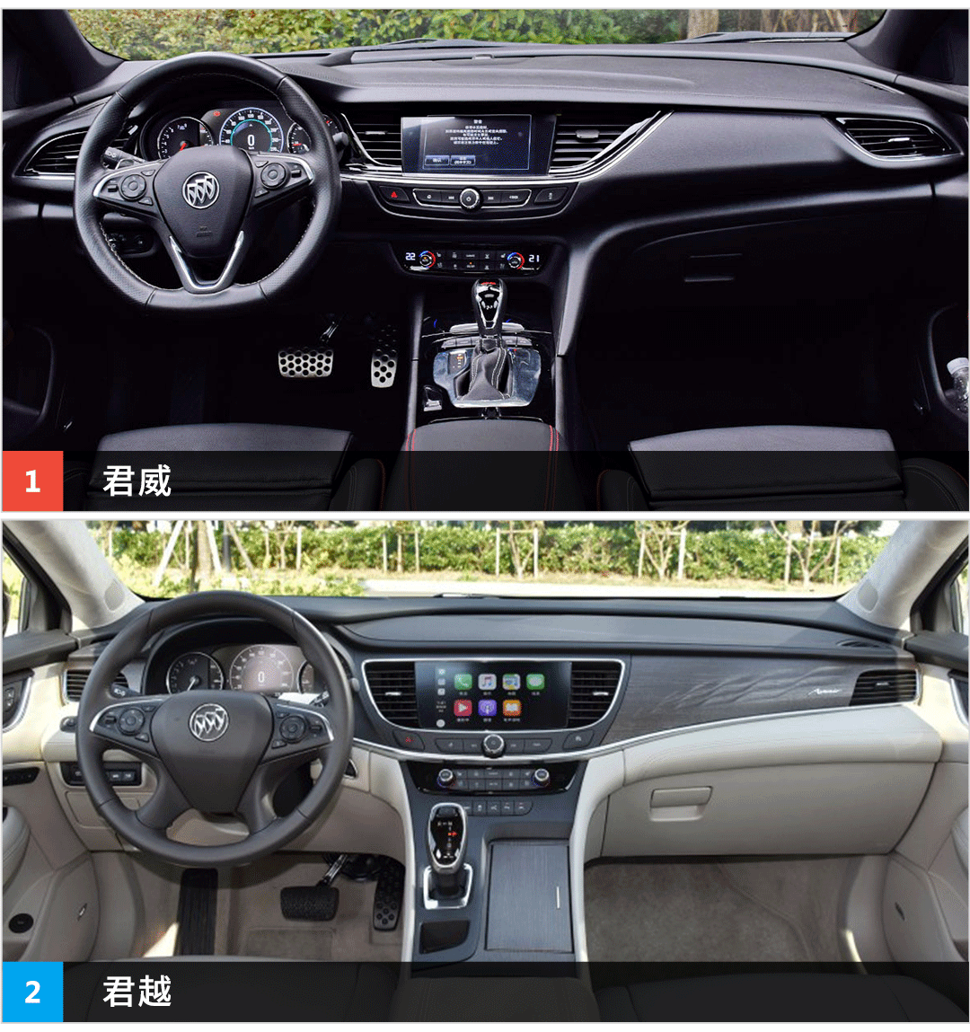内饰:君威侧重前排体验,君越侧重后排体验