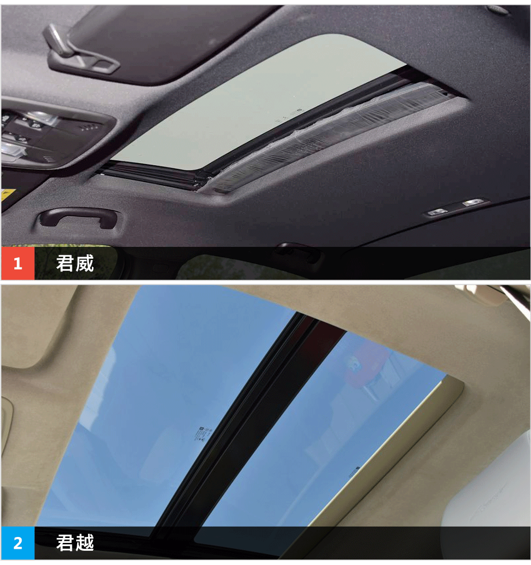 君威只有普通天窗,而君越全系都标配了全景大天窗,中国人最爱!