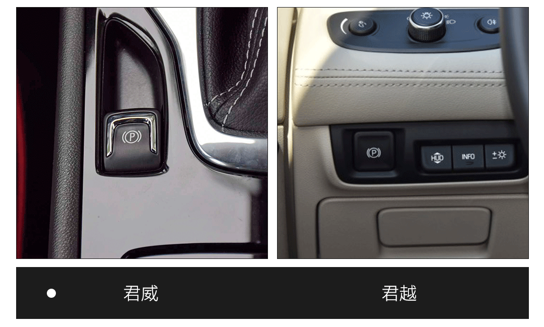 需要注意的是,君威的电子手刹仍然设计在挡把旁边,而君越的电子手刹位置则设计到了方向盘左侧,初次驾驶需要适应一下。