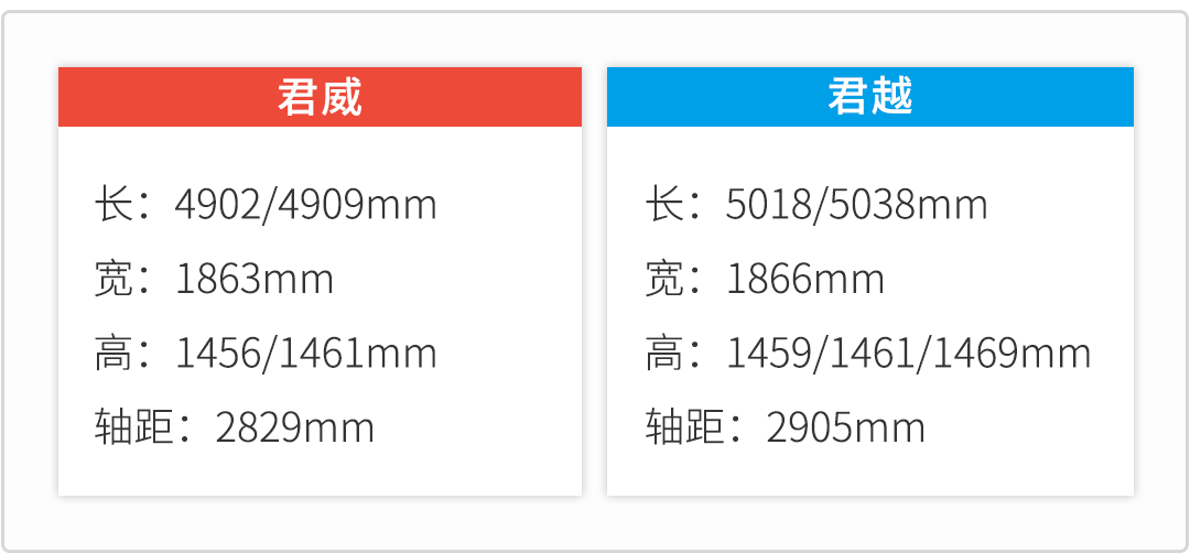 两款车的1.5T和2.0T引擎是共享的,参数也完全一致,不同的是君威全系匹配9AT变速箱,新款取消了老款的混动车型;君越则是1.5T配7DCT,2.0T配9AT,保留有一款混动车型。就价格上看,重叠度最高的是2.0T的君威和1.5T的君越,这意味着花差不多的钱,买君威就能买顶配,做鸡头,还能得到最强的动力感受和最帅气的外观。相反,买君越就只能买低配,当凤尾,图个后排大空间和舒适性。