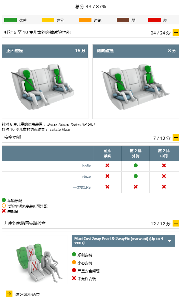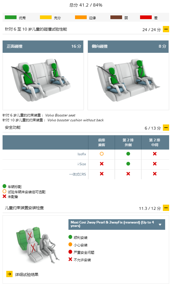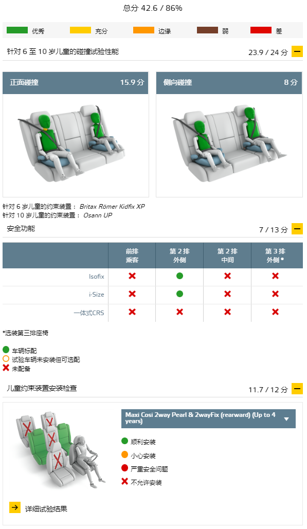 ES在儿童保护的部分表现同样十分均衡,并没有重大的短板以及突出的优点,但总体的性能均属于顶尖水准。