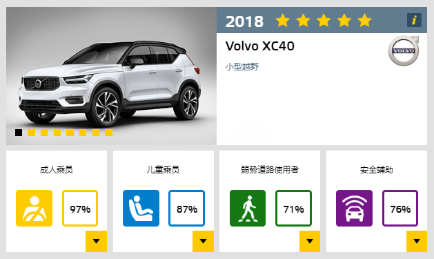 XC40在不久之前已在国内上市,且前期车型是以进口的方式进行销售,这意味着,在E-NCAP测出的安全性能,对于目前国内买到的车型来说有着较高的参考价值。
