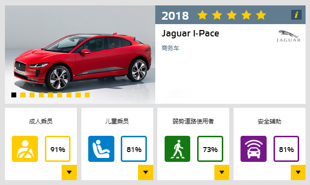 作为传统车企的首款纯电动车型,捷豹I-PACE一经发布就备受关注。作为电动车,相信不少人对其安全性能抱有好奇心,这次E-NCAP如愿找来了I-PACE进行测试,I-PACE也不负众望,交出了五星好成绩。