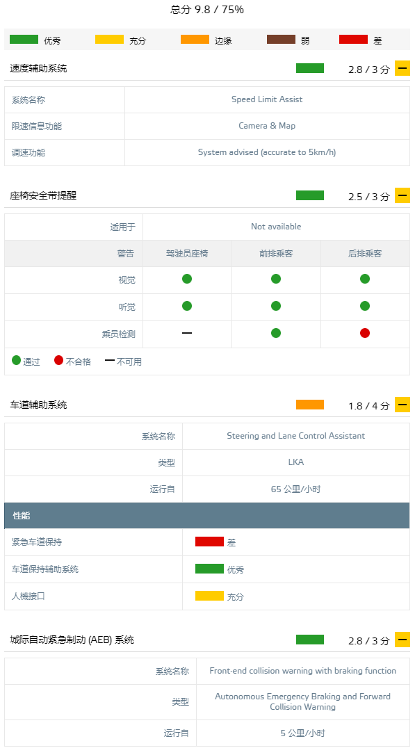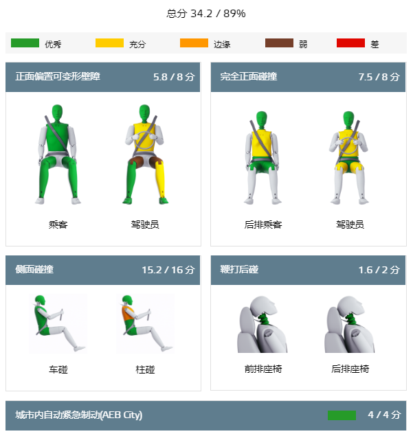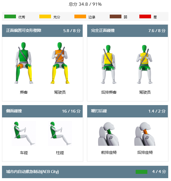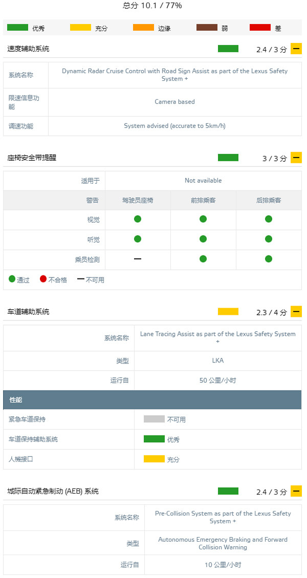 真正拉开评分差距的,在于ES的行人保护部分,ES的行人碰撞保护可以说是今天介绍的几台车里表现最好的存在,因此得分也十分高。此外,ES的AEB行人、骑车者的防碰撞都十分出色。
