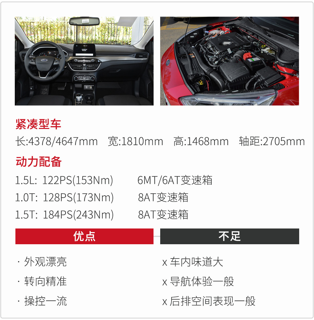 相比起英朗,或许福克斯来得正是时候,整个市场都开始慢慢接受三缸发动机。而且新一代福克斯的整体表现确实出色。首先外观设计是焕然一新的,十分动感,特别是两厢版的ST Line版本,如今真的没多少款两厢车能达到这个颜值高度了。其次是内饰设计、做工、用料的提升让人满意,最后是配置方面也很厚道,即使暂无太多优惠。