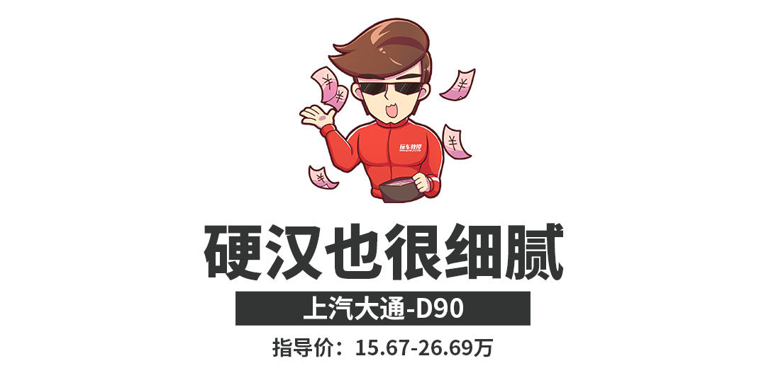 在车型选择上,上汽大通D90提供了比较特殊的选装模式,可以根据自己的需求进行一些配置挑选,并且在外观上也有些区别。比如前脸,就有五种设计风格,总有一种风格适合你的审美。在车型的座位选择,各种布局都有,选择性也较为丰富。非承载式的车身结构,整体驾驶视野也较为不错。