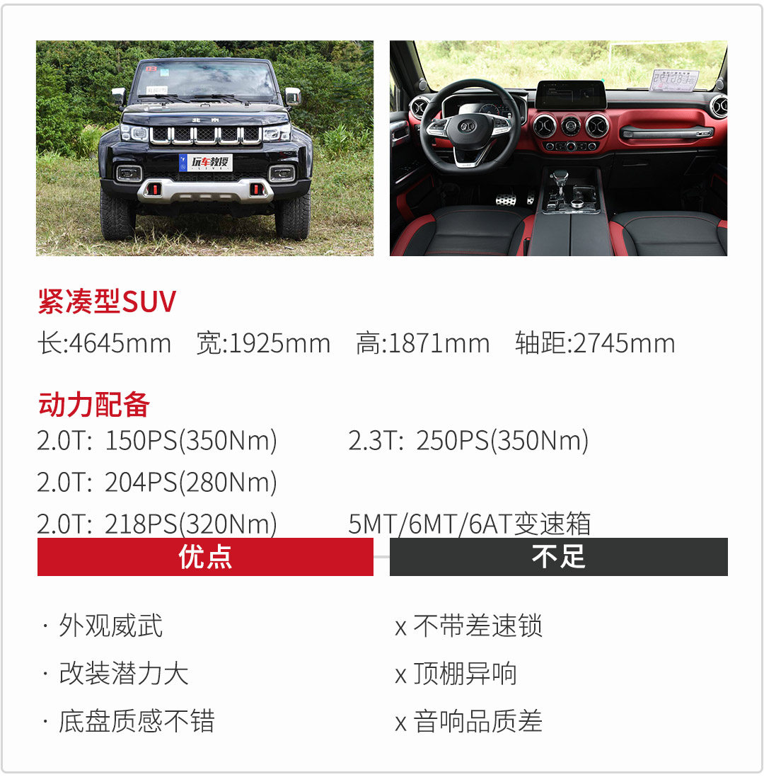 不高的价格,能够让消费者满足了自己的越野情愫。在今年年初,BJ40增加了柴油版。而柴油版在低速的时候,输出的扭矩更大,对于不同行驶条件的选择性更多。非承载式车身,不会过多的强调舒适性,但BJ40过滤掉外界而来的干扰很有自己一套方法。比较可惜的是,没有配备差速锁,这会让部分消费者的处女座思维有点接受不来。