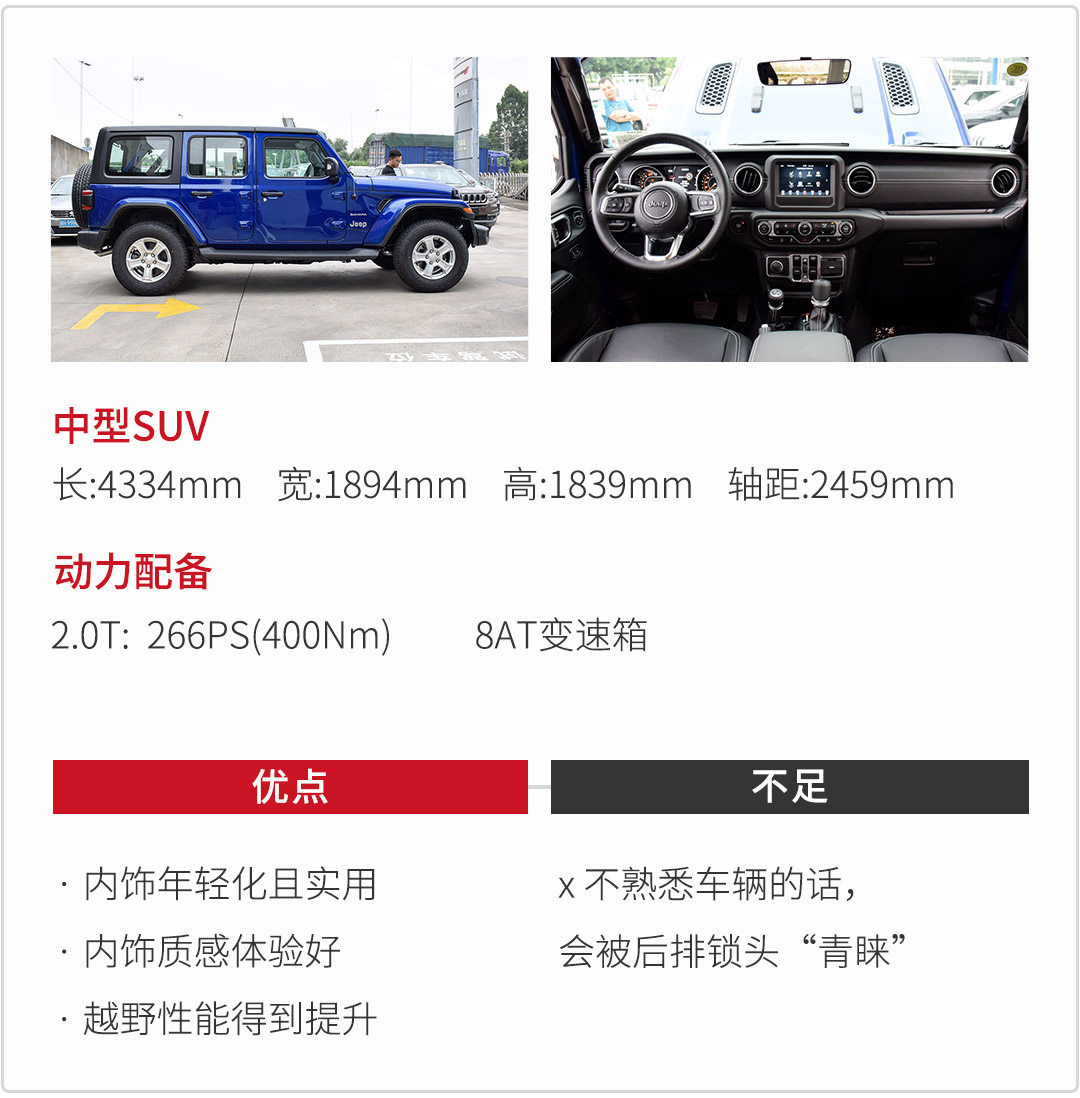 Jeep,常常被称为越野的鼻祖。具体到某一款车型的话,离不开牧马人这款越野硬派车型。在今年的7月份,Jeep给我们带来了一款全新的牧马人。在没有改变精髓的前提下,却能够在很多细节上加以改进,以此更加符合消费者的多种需求。得益于设计,外观没有大动干戈,但接近角、离去角、通过角等数据参数都有了一定的提升。在分时结构的四驱基础上,新增加了4H AUTO挡,提升一定的越野性能,
