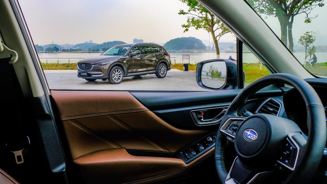 由动力而连带出来的驾驶体验,教授认为CX-8会做得更好,森林人确实有斯巴鲁祖传的操控性,对比其他的或许有特色,但在这场对比中,会稍逊一筹,动力响应没有CX-8跟脚,转向也没有那么细腻,而且别忘了,CX-8是拖着近5米车长的。
