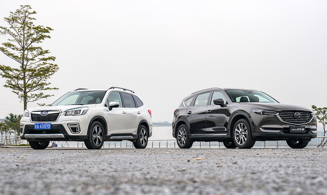 今天教授给大家对比两款车,一款全新车马自达CX-8,会不会叫座现在不清楚,号称冲着汉兰达来的,反正之前多少冲着汉兰达来的对手都没能把汉兰达干倒;另一款则是森林人,非常典型的一个叫好不叫座代表,水平对置、全时四驱、全进口,懂车的人都会买,结果销量呢?月均只有一千出头的人买账。