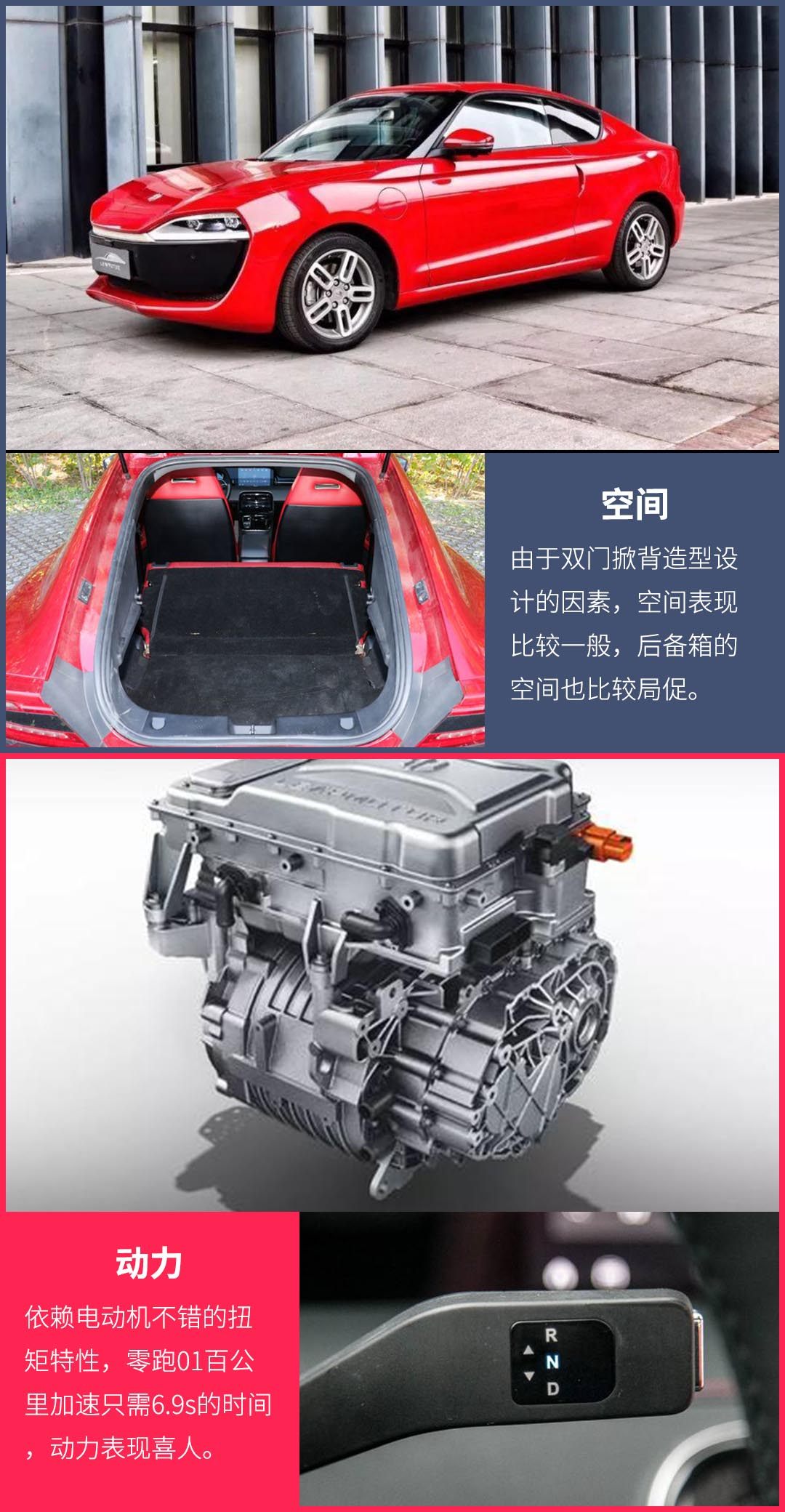 由于成本的因素,后悬架为扭力梁式非独立悬架,一方面能够节省出空间。但一方面,在实际的行驶途中,对颠簸路面的过滤还是会有些跳动感。由于电机出色的扭矩性能,其加速能力比较喜人。但对于空间有些要求的消费者,需要做些心理准备,毕竟零跑S01是一款双门掀背车型。