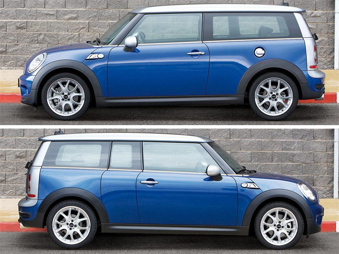 教授说的是老款的第一代MINI CLUBMAN,如果从主驾一侧看侧面,会以为它是个正经的三门小钢炮,没毛病。但从副驾一侧看侧面,就会看到副驾驶车门后面还多了一扇小门,和主驾驶那一侧的造型并不对称。
