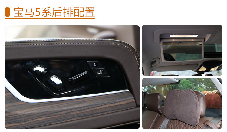 在后排的配置上,宝马5系有老板键、软头枕、后排独立出风口、靠背电动调节、化妆镜。