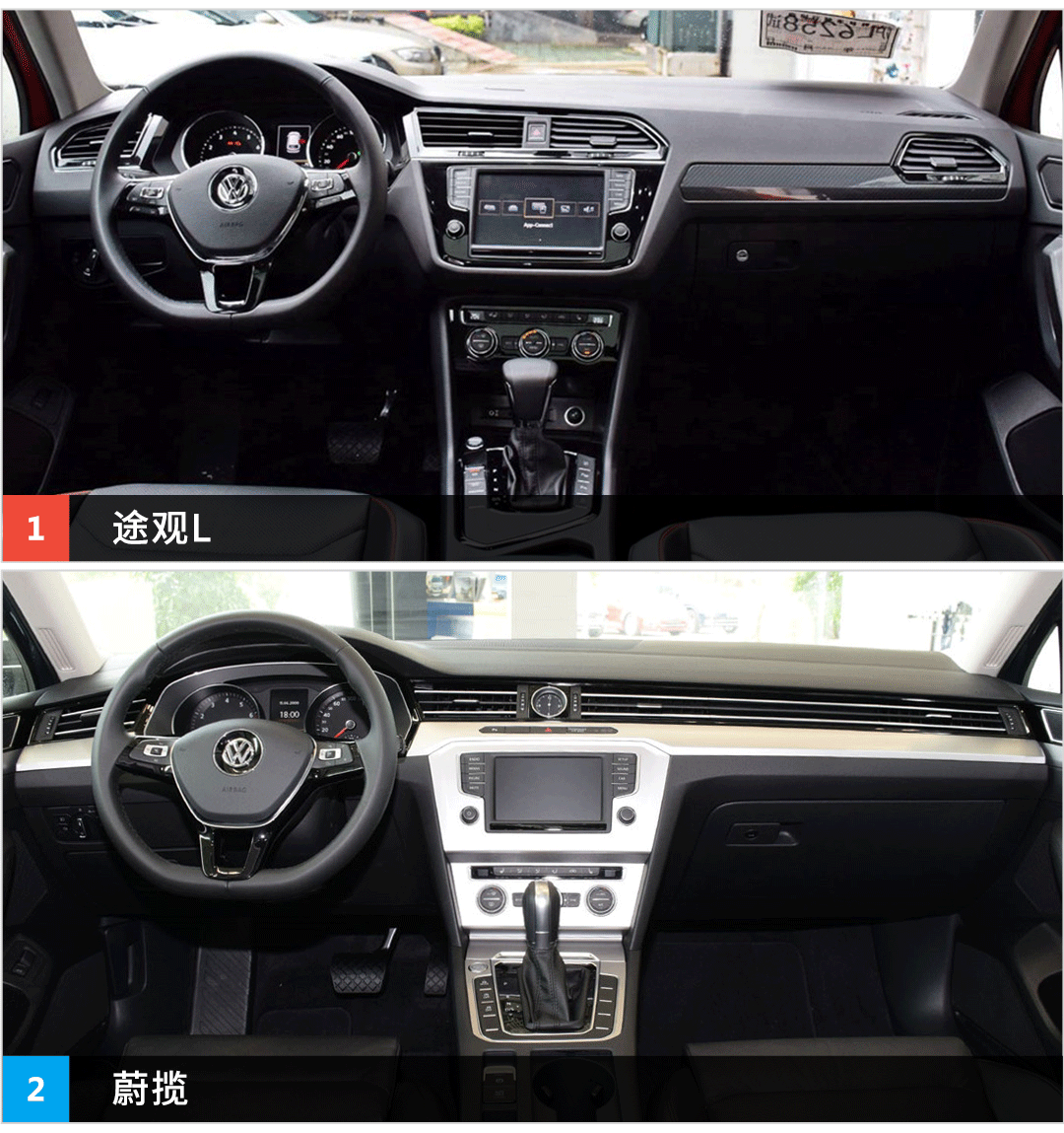 内饰:途观L是精致中国风,有更多国人喜欢的配置;蔚揽是欧洲素车风,适应欧洲人的用车习惯