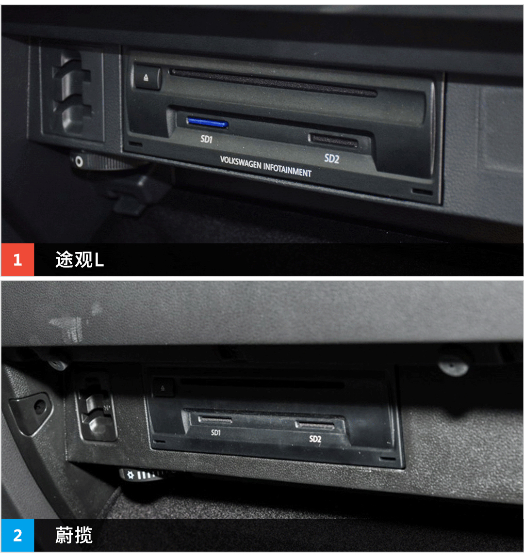途观L的高配车型,以及蔚揽全系都搭载了一项现在大多数新车都很少见的配置,那就是单碟CD机,并被布置到了副驾驶前方的手套箱里面,对于怀旧的消费者来说是件好事。