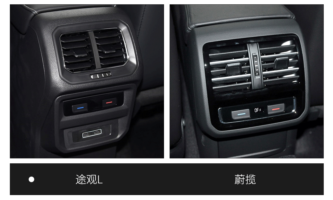 后排配置方面,途观L更胜一筹,标配了两个USB接口,蔚揽则是只有空调出风口。这也是途观L本土化改进后的优势和蔚揽作为纯种进口车的劣势。