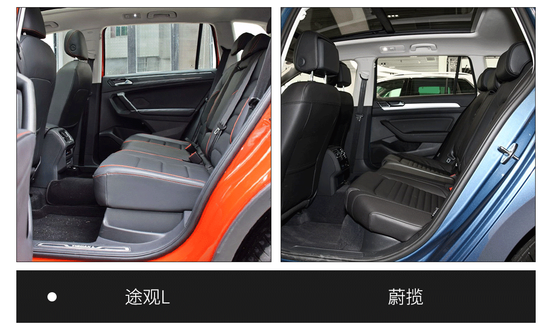 后排空间特别是腿部空间方面,加长轴距后的途观L已经不是标轴版的蔚揽能比的了,这一方面途观L完胜。