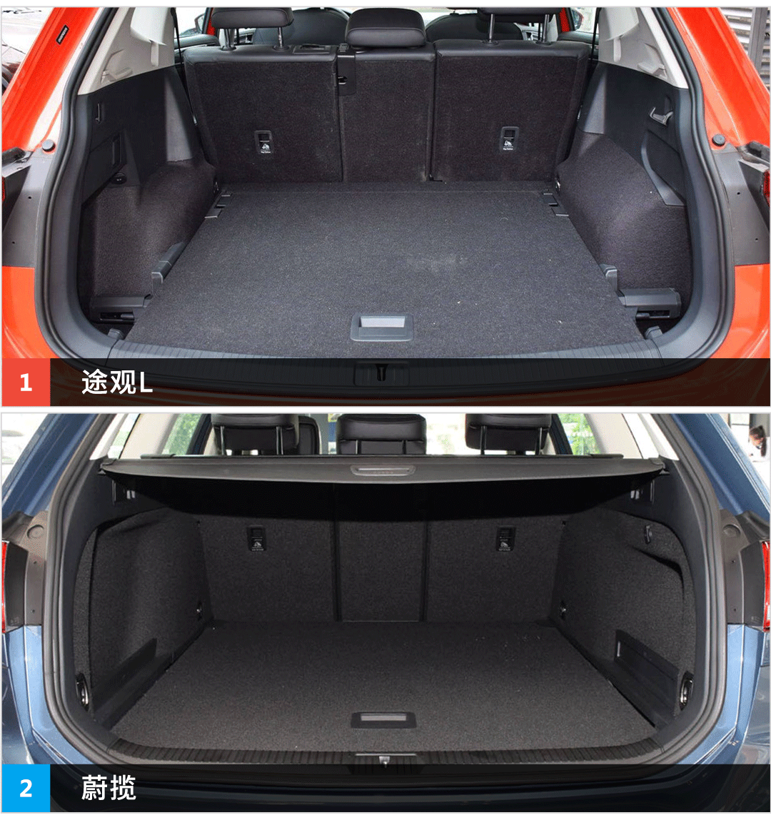 空间:乘坐空间途观L明显占优,行李厢空间表现都很优秀