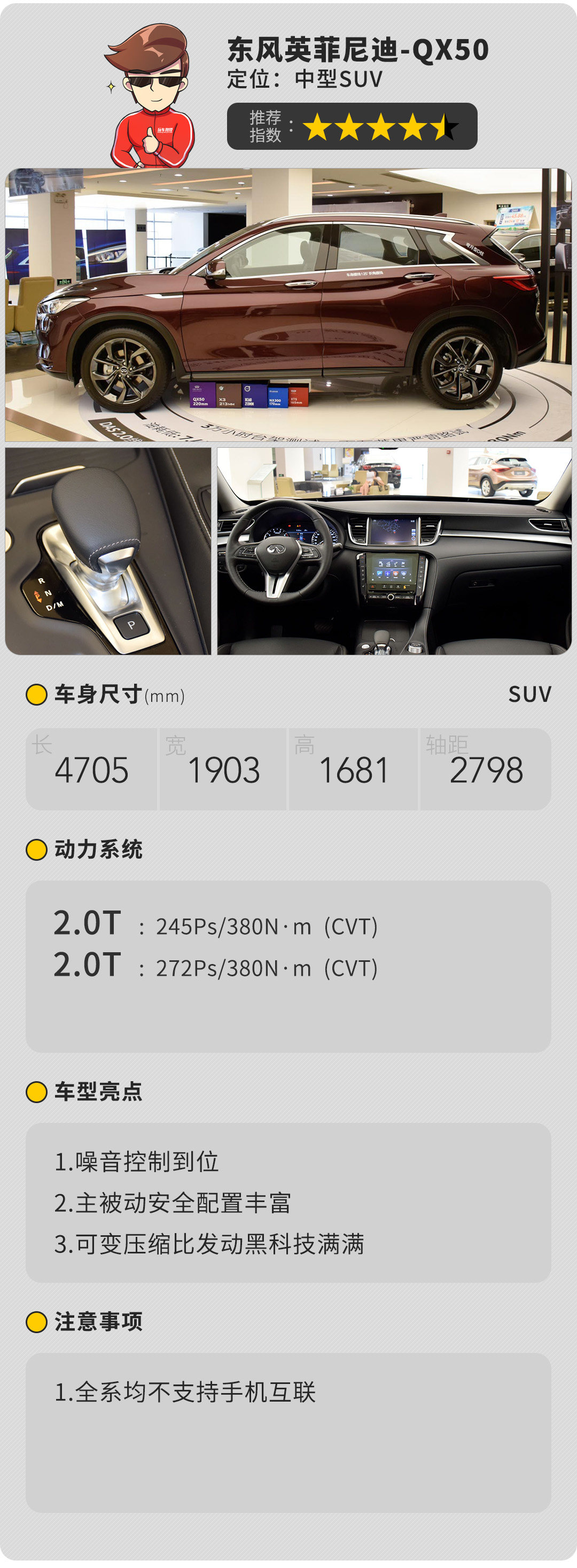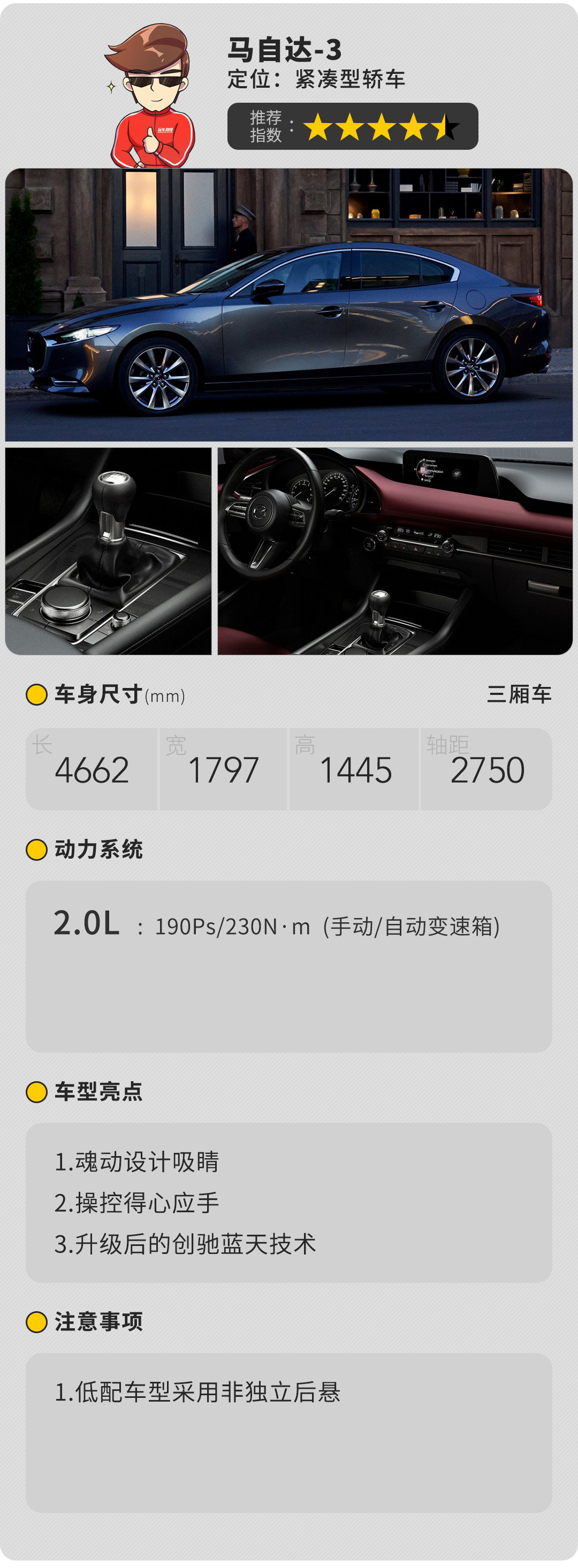 上述3款车型的发动机所蕴含的黑科技无一不代表着时下内燃机最顶尖的水准,如果以“买车先看发动机”的观念出发,这3款车已经符合购买的先决条件。并且QX50还有低价高配的性价比优势、XT4有美系的豪华、马3有着“魂动”的高颜值等附加价值。如果对发动机的技术有所追求不妨考虑下此3款车型。