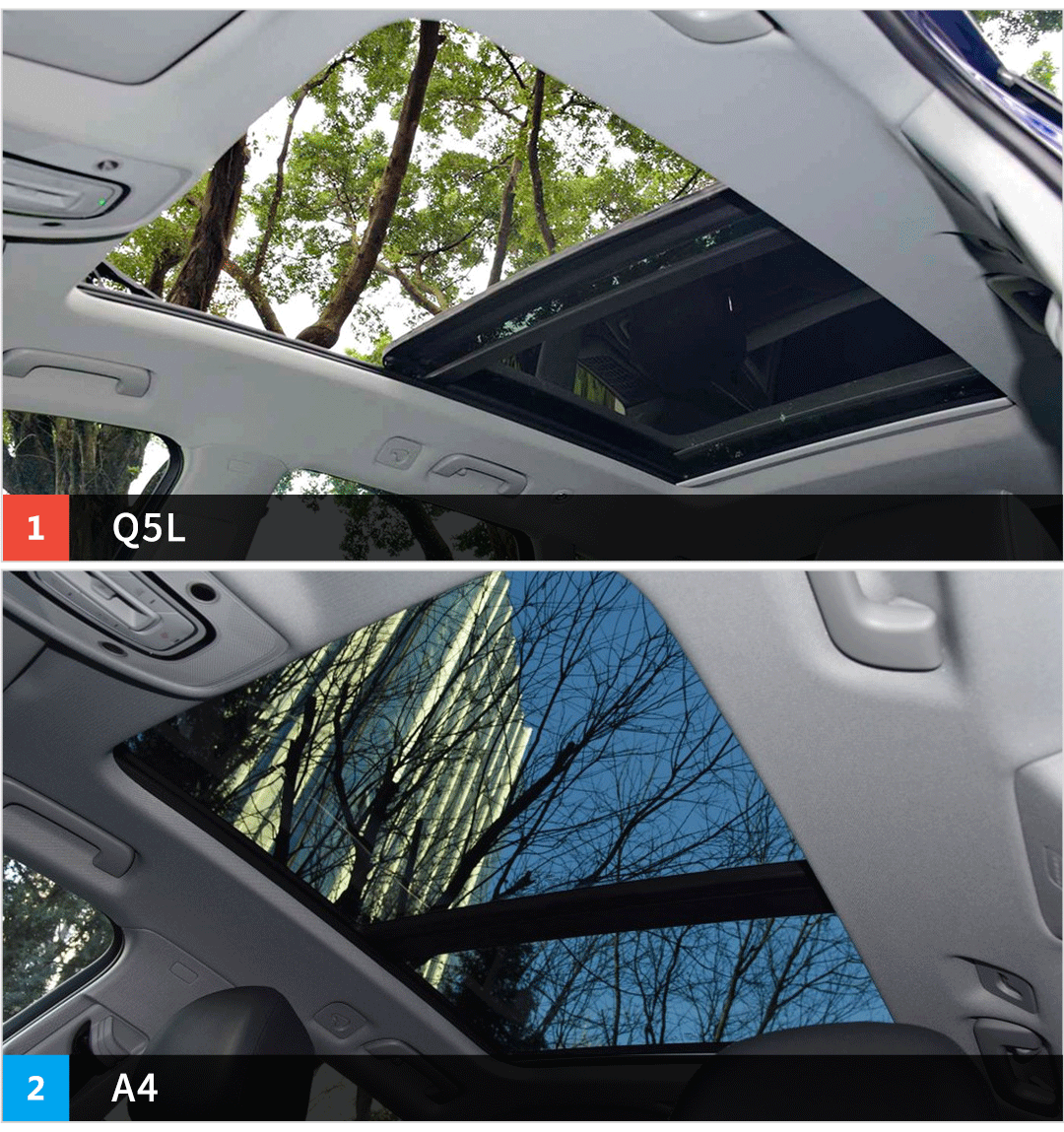 两款车都配备了可开启式的全景大天窗,点赞。