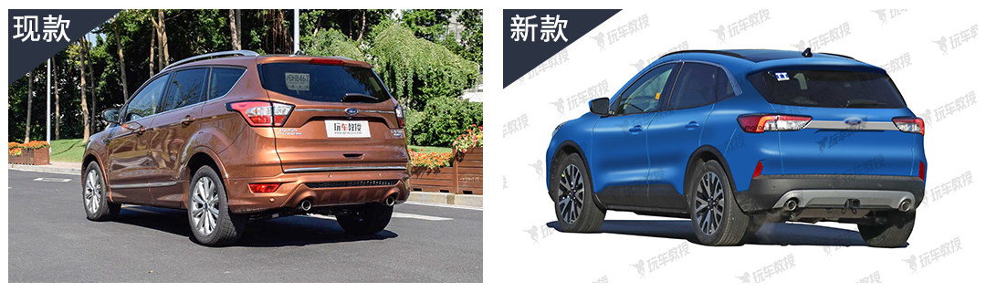 来到车尾,全新翼虎的变化也十分明显,侧窗的形状和尾灯造型全新设计,整体看起来依然是简约风格,轮毂造型显得很厚实,在排气管上新款车型依然是双边双出造型,运动感比较足。