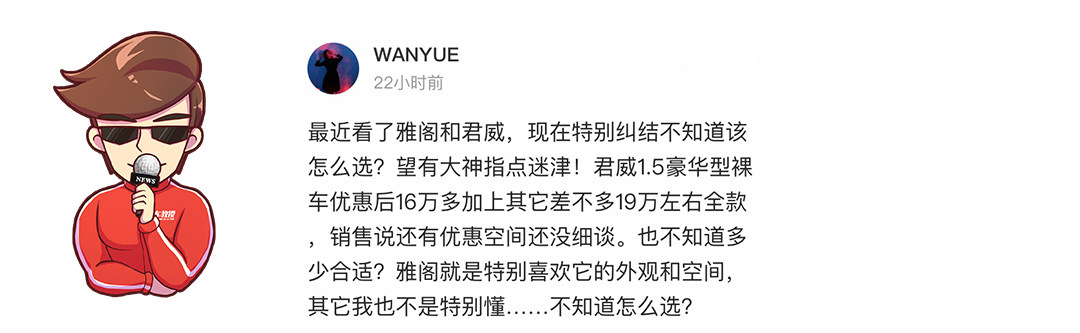 没错又是一个中型车的相关问题,要说这两部中型车的老江湖了。君威在完成换代后以更潮流的外观、全系9AT和科技感十足的内饰博得众人的眼球。雅阁作为耕耘中国市场多年的老牌中级车自然了解中国消费者对于"大"的要求,腿部空间表现自然不用多说,但由于溜背造型导致了后排头部空间稍显压抑。要怎么选,这个问题交给教授也很烦恼啊,毕竟两部都是好车。那么教授给出总结, 如果对空间要求高的,选择雅阁;如果对车子本身更感兴趣的,君威会是个不错的选择。