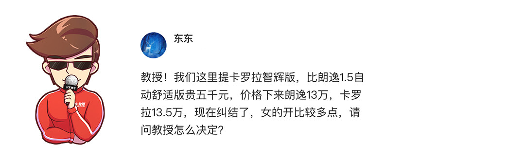 真的无论哪里都逃不过这两款爆款车,卡罗拉作为10万左右的首选车型之一,为丰田在国内贡献了超过一半的销量,甚至被称为丰田销量“扛把子”。凭借精致的外观与优秀的燃油经济性,不少年轻人会选择卡罗拉作为他们的第一辆车。而朗逸则是作为中国特供车,在外观、尺寸、空间、配置与动力都专为中国人量身定制,并且全新一代朗逸一经亮相马上吸引了不少人的目光。教授给出的总结是,如果后排不会经常有人乘坐的话,卡罗拉小巧灵活的身材会更适合女性驾驶;如果有后排需求的话,朗逸的表现能会更加出色。